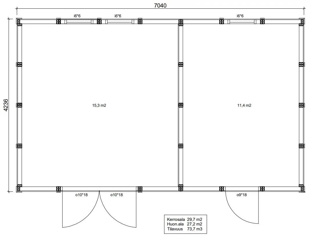 Kaikkiin rakennuksiin kuuluu vakiomallin lupakuvat jotka voi ladata ilman sitoutumusta lupakuvakirjastosta www.elementtielli.fi/lupakuvat
