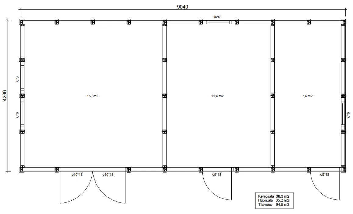 – 1kpl 9×19 ovi jossa Abloy lukkorunko ja säädettävät saranat sekä eristetty ja 2K lasi