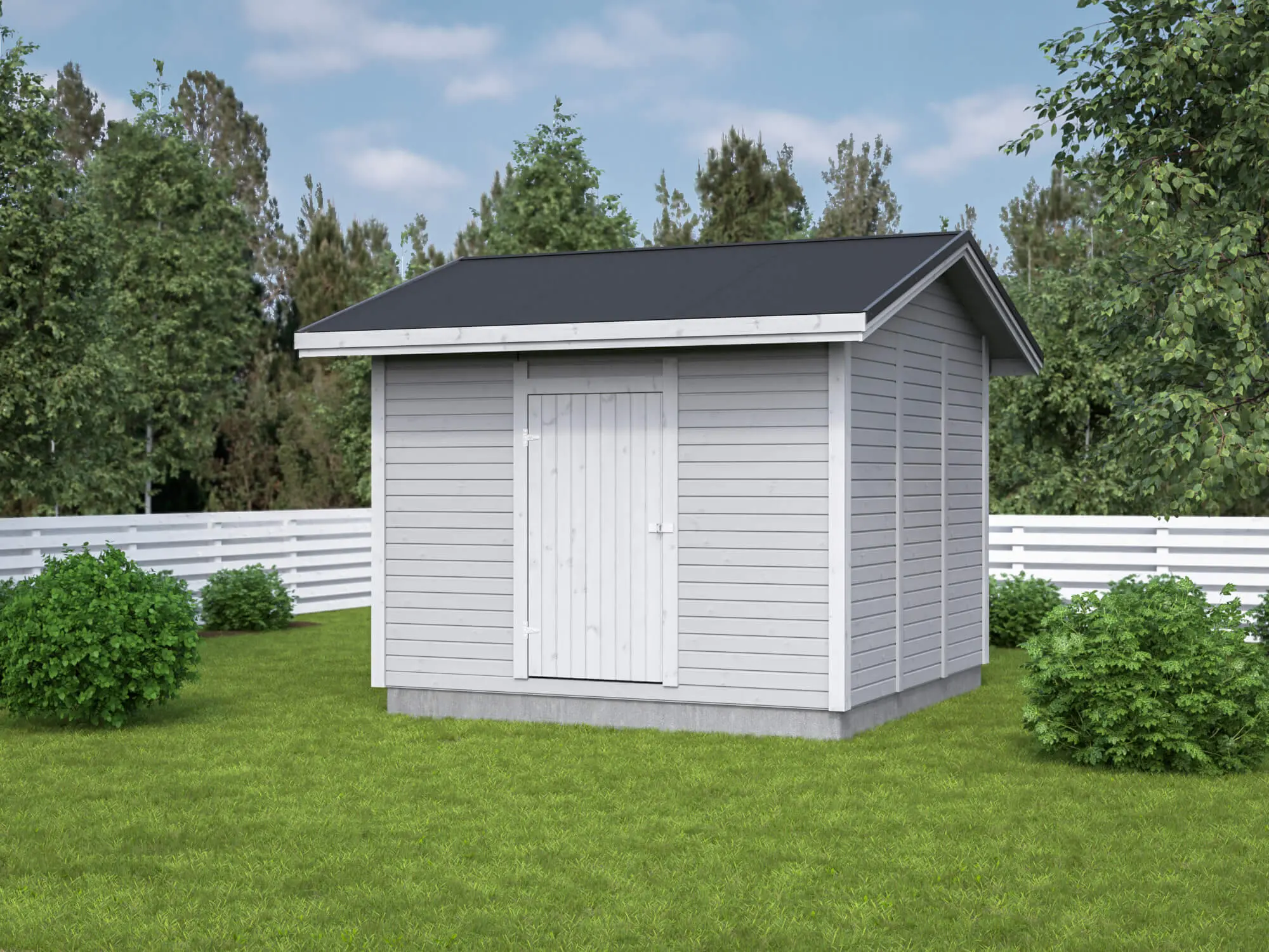 Tämän lisäksi tarvitsette lähinnä vain maalit, räystäskourut/rännit ja lukkorungon sekä kahvan!